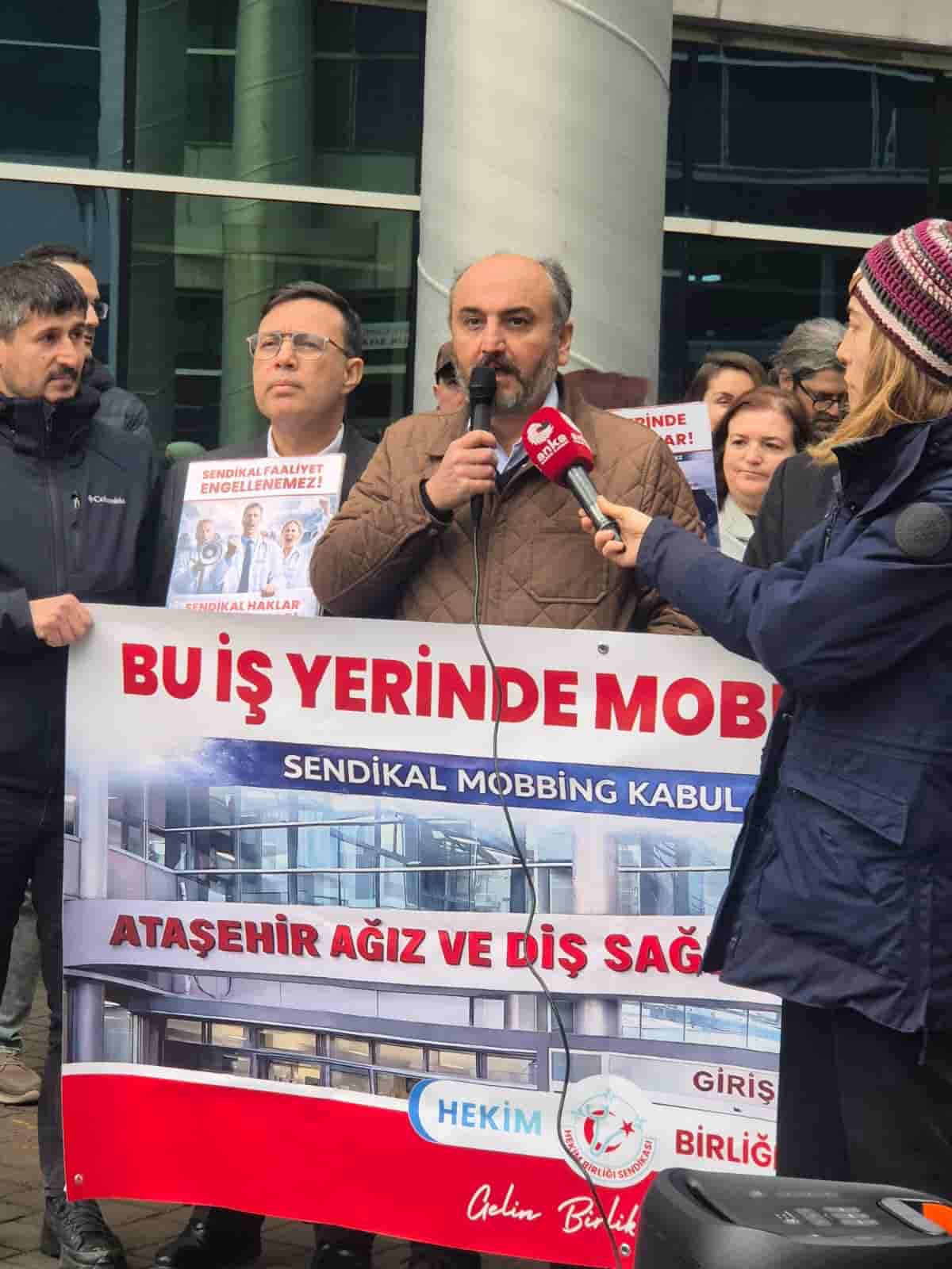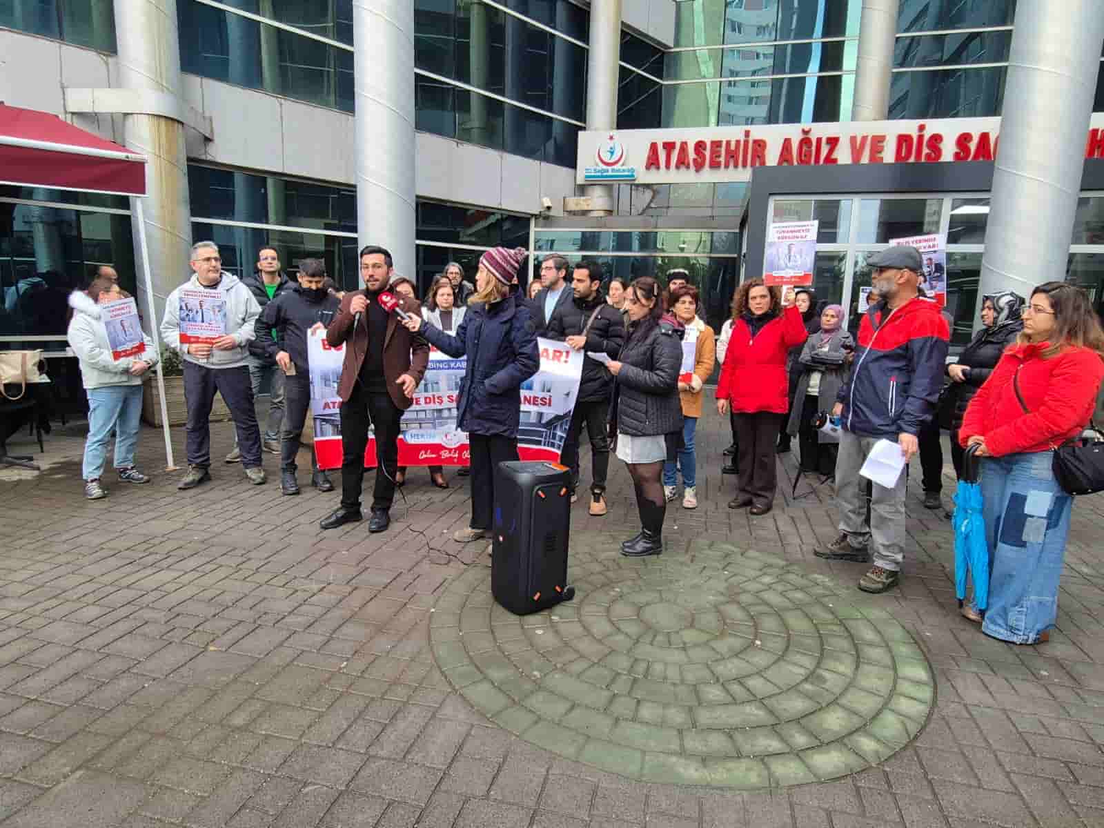 İstanbul Ataşehir Ağız ve Diş Sağlığı Hastanesi önünde düzenlenen basın açıklamasına sağlık iş kolundaki sendikalar, Hekim Birliği Genel Başkan Yardımcısı Op. Dr. Çağlar Yıldırım ve Hekim Birliği İstanbul Şube Yönetimi’nin katılımıyla gerçekleşti. Hekim Birliği yöneticileri tarafından yapılan açıklamada şu ifadelere yer verildi, “Bugün burada; emeğiyle, liyakatiyle ve onuruyla görev yapan hekimlerin, sistematik bir baskı ve yıldırma politikasıyla karşı karşıya kalmasına “DUR” demek için toplandık. Hekim Birliği İstanbul Şube Yönetim Kurulu üyemiz Dt. Janat Düzgün, son dönemde ardı arkası kesilmeyen, hiçbir hukuki dayanağı olmayan mesnetsiz soruşturmaların ve nihayetinde “cezalandırma” amacı taşıyan usulsüz bir tayin kararının hedefi olmuştur”
