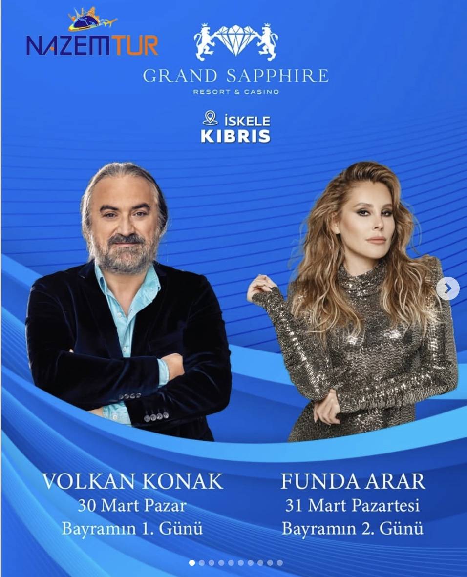 Nazem Tur ile Grand Sapphire Resort & Casino’da rüya gibi bir tatil sizi bekliyor! ✨ Kuzey Kıbrıs’ın en gözde otellerinden biri olan bu eşsiz tatil cennetinde, denizin maviliğine uyanacak, sınırsız eğlenceye doyacaksınız! Ve dahası? Bayram coşkusu ünlü sanatçılarla taçlanıyor!